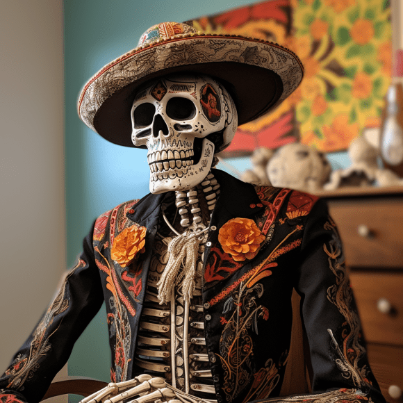 The Calaca, a skeleton figure clothed in traditional Mexican attire, is one of the most famous Dia de los Muertos icons. In recent years, these calacas have begun to incorporate Halloween aspects, creating an intriguing mix of two cultures. Calacas are frequently seen wearing witch hats or vampire capes, demonstrating the peaceful coexistence of these two traditions in Mexico City.