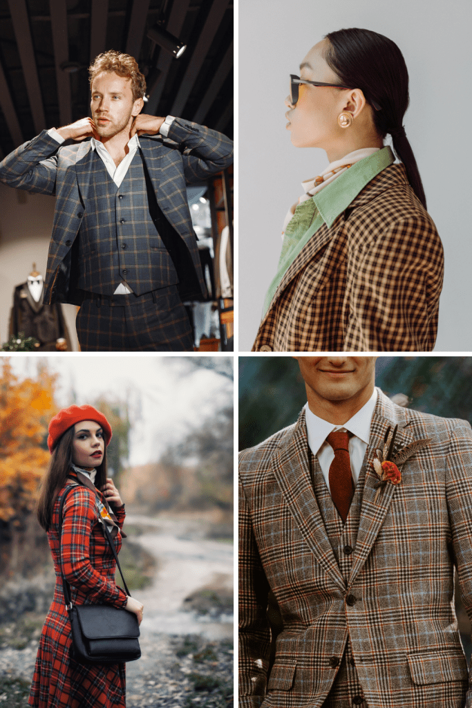 Are you hesitant to wear an entire ensemble in plaid? Use plaid on your scarf, pocket square, or tie, among other accessories. While keeping the rest of your ensemble simple, it’s a subtle homage to the pattern.