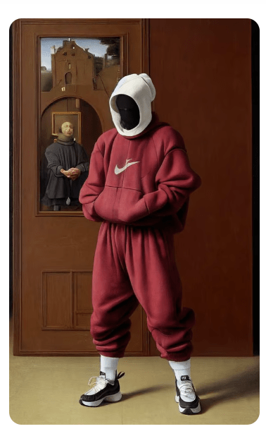 Str4ngeThing has branched out beyond shoes into AI-generated streetwear, producing items that combine Renaissance-inspired aspects with modern clothing. This includes digital art that challenges conventional ideas of fashion and art by showcasing contemporary Nike clothing against the backdrop of Renaissance artworks.